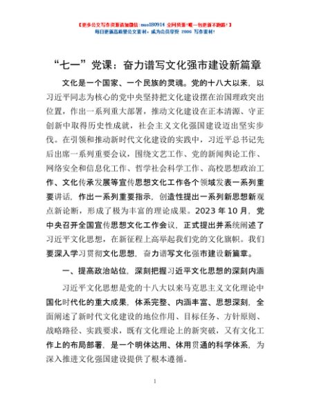 / “七一”党课:奋力谱写文化强市建设新篇章