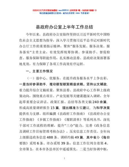 / 县政府办公室上半年工作总结