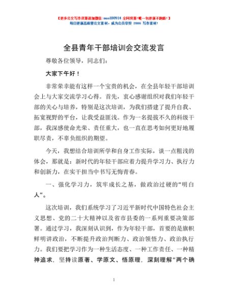 / 全县青年干部培训会交流发言