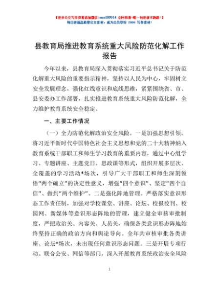 / 县教育局推进教育系统重大风险防范化解工作报告