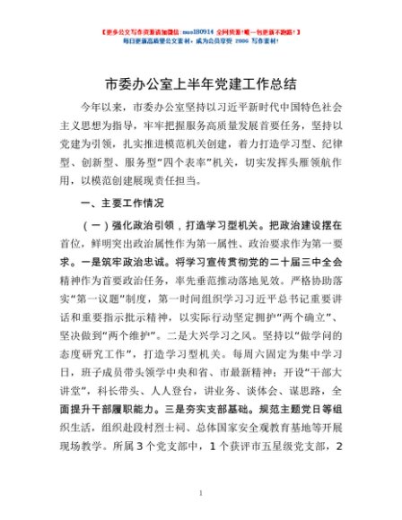 / 市委办公室上半年党建工作总结