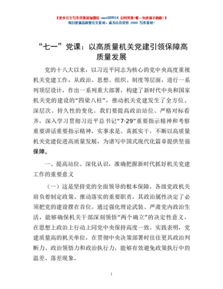 “七一”党课:以高质量机关党建引领保障高质量发展