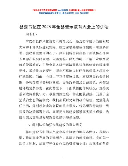 / 县委书记在2025年全县警示教育大会上的讲话