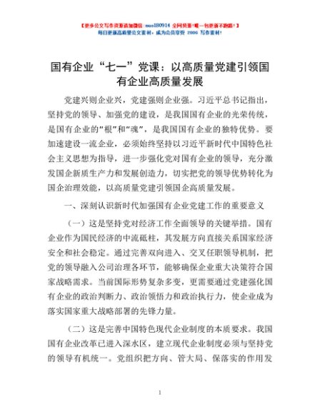 / 国有企业“七一”党课:以高质量党建引领国有企业高质量发展