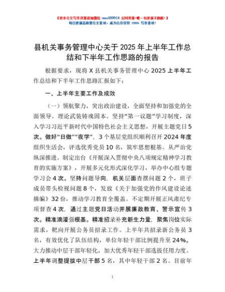 / 县机关事务管理中心关于2025年上半年工作总结和下半年工作思路的报告
