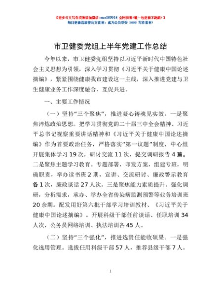 / 市卫健委党组上半年党建工作总结