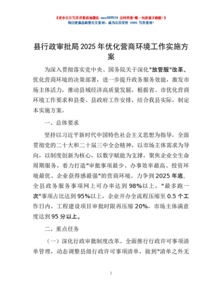 / 县行政审批局2025年优化营商环境工作实施方案