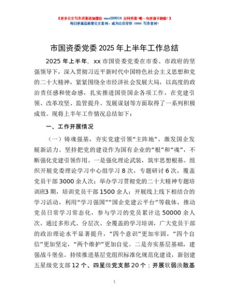 / 市国资委党委2025年上半年工作总结