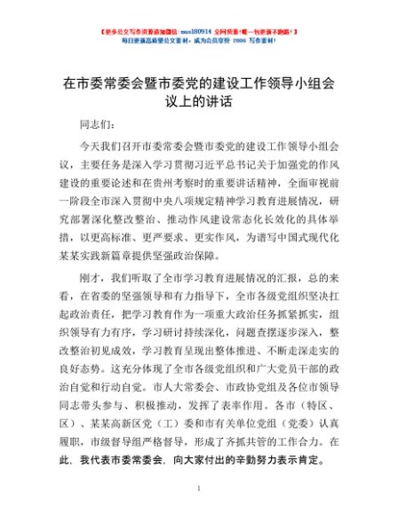 / 在市委常委会暨市委党的建设工作领导小组会议上的讲话