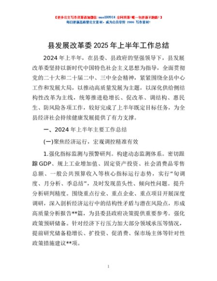 / 县发展改革委2025年上半年工作总结