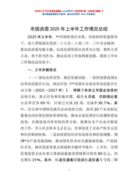 / 市国资委2025年上半年工作情况总结