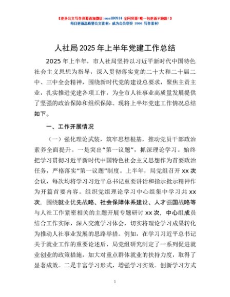 / 人社局2025年上半年党建工作总结