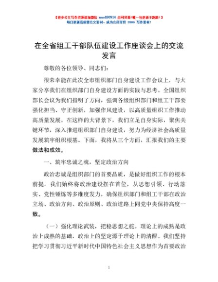 / 在全省组工干部队伍建设工作座谈会上的交流发言