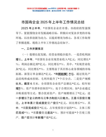 / 市国有企业2025年上半年工作情况总结