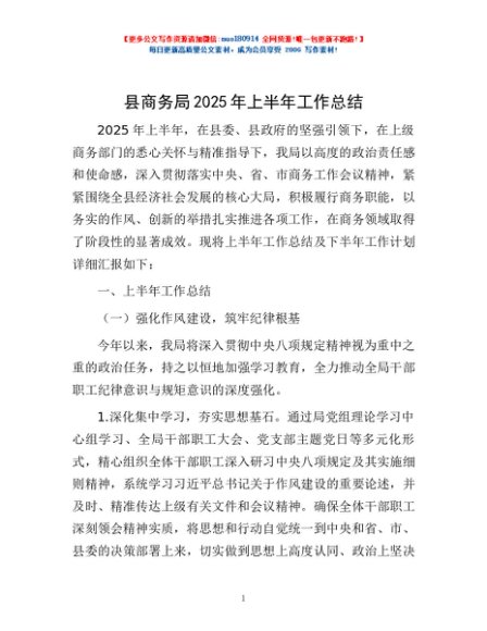 / 县商务局2025年上半年工作总结