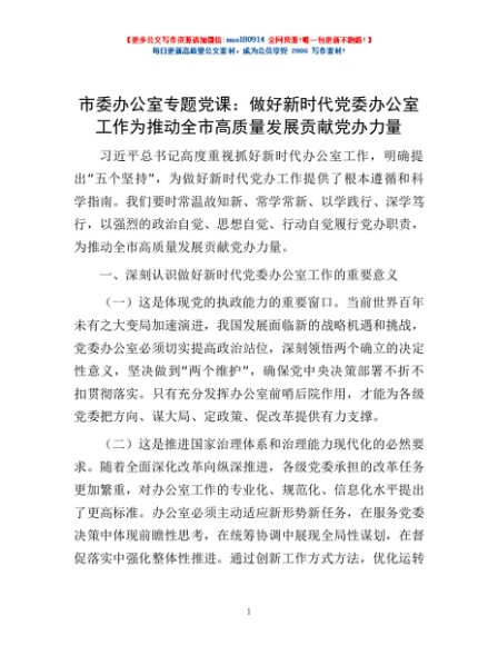 市委办公室专题党课:做好新时代党委办公室工作 为推动全市高质量发展贡献党办力量