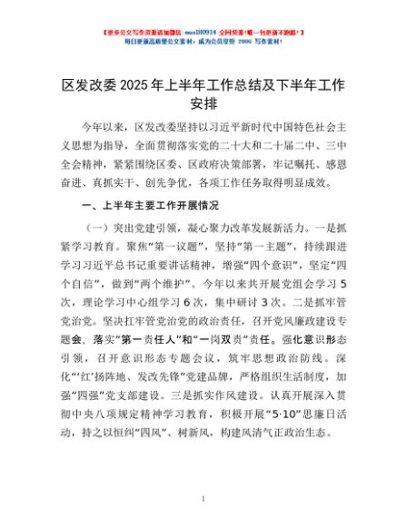 / 区发改委2025年上半年工作总结及下半年工作安排