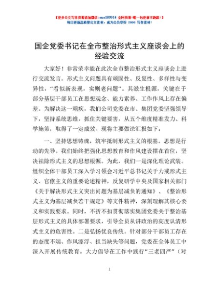 / 国企党委书记在全市整治形式主义座谈会上的经验交流