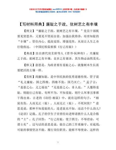 / 【写材料用典】廉耻之于政,犹树艺之有丰壤