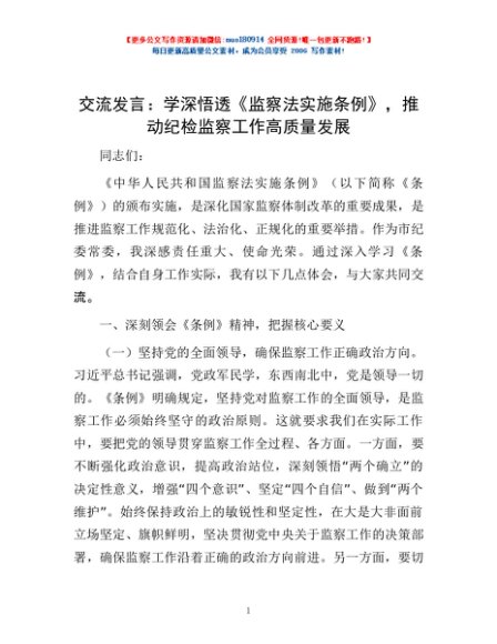 / 交流发言:学深悟透《监察法实施条例》,推动纪检监察工作高质量发展