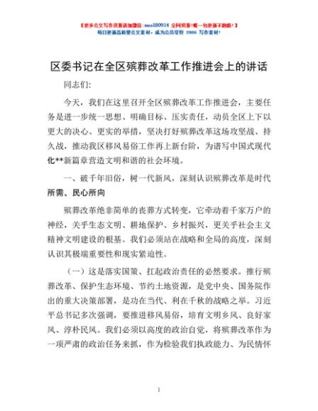/ 区委书记在全区殡葬改革工作推进会上的讲话