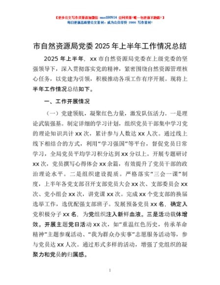 / 市自然资源局党委2025年上半年工作情况总结