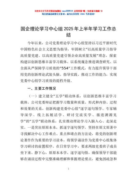 / 国企理论学习中心组2025年上半年学习工作总结