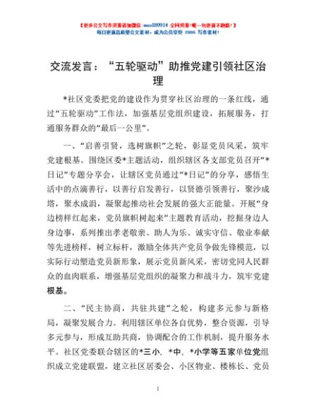 / 交流发言:“五轮驱动”助推党建引领社区治理