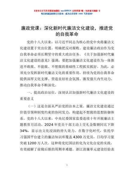 / 廉政党课:深化新时代廉洁文化建设,推进党的自我革命