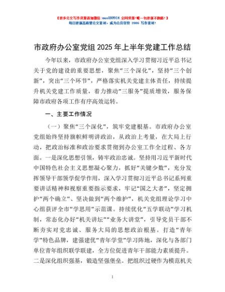 / 市政府办公室党组2025年上半年党建工作总结