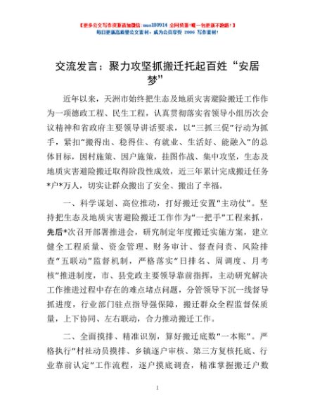 交流发言:聚力攻坚抓搬迁 托起百姓“安居梦”