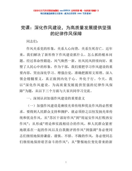 / 党课:深化作风建设,为高质量发展提供坚强的纪律作风保障