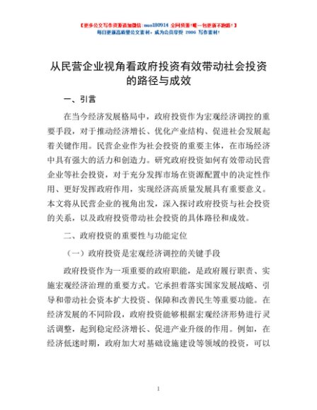 / 从民营企业视角看政府投资有效带动社会投资的路径与成效