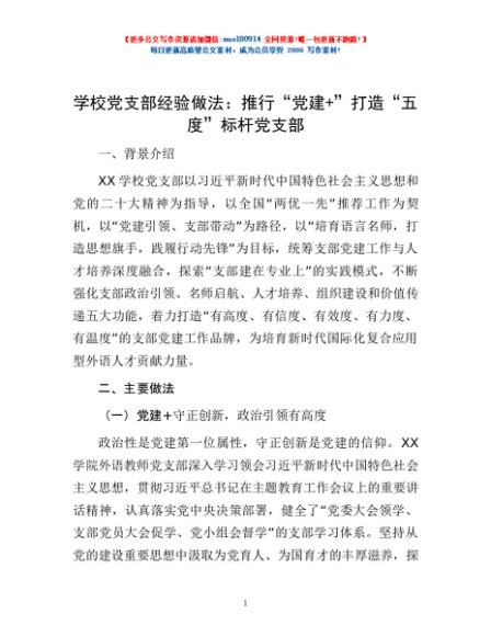 / 学校党支部经验做法:推行“党建+”打造“五度”标杆党支部