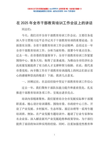 / 在2025年全市干部教育培训工作会议上的讲话