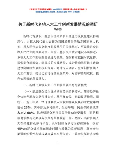 / 关于新时代乡镇人大工作创新发展情况的调研报告