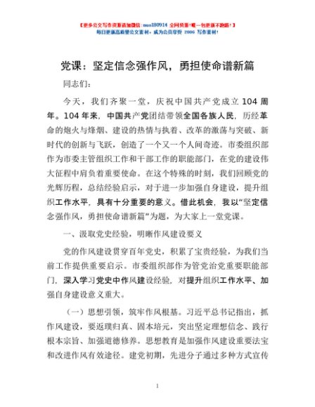/ 党课:坚定信念强作风,勇担使命谱新篇