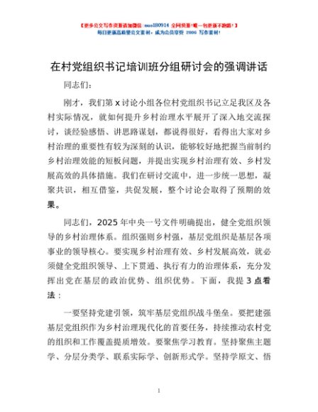 / 在村党组织书记培训班分组研讨会的强调讲话