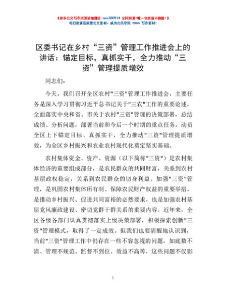 / 区委书记在乡村“三资”管理工作推进会上的讲话:锚定目标,真抓实干,全力推动“三资”管理提质增效