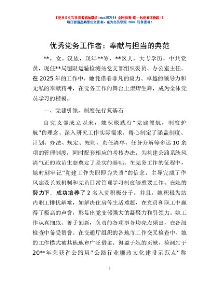 / 优秀党务工作者:奉献与担当的典范