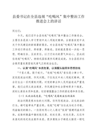 / 县委书记在全县违规_吃喝风_集中整治工作推进会上的讲话20250616