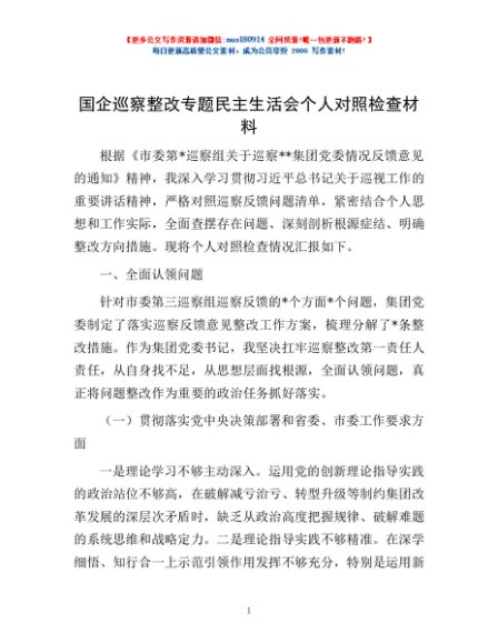/ 国企巡察整改专题民主生活会个人对照检查材料