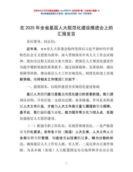 / 在2025年全省基层人大规范化建设推进会上的汇报发言