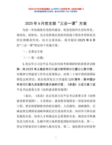 / 2025年6月党支部“三会一课”方案
