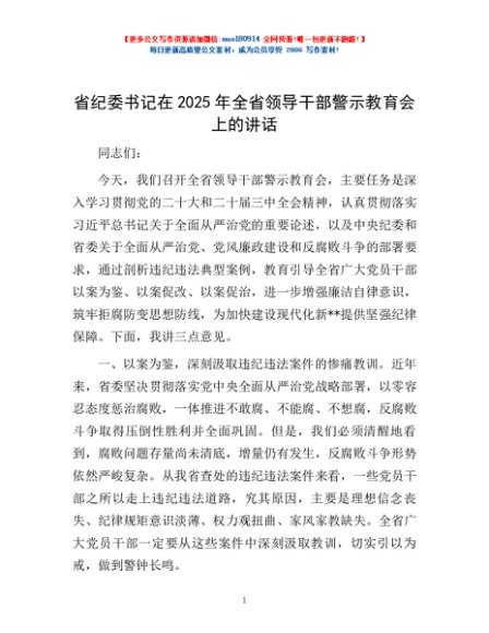 / 省纪委书记在2025年全省领导干部警示教育会上的讲话