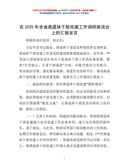 / 在2025年全省离退休干部党建工作调研座谈会上的汇报发言