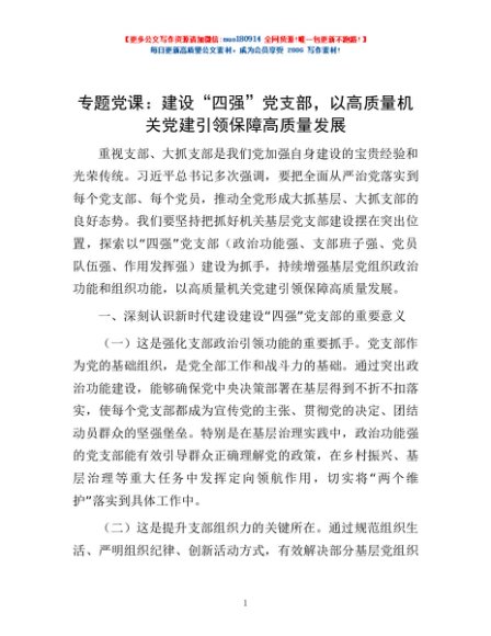 专题党课:建设“四强”党支部,以高质量机关党建引领保障高质量发展