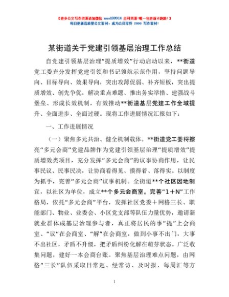 / 某街道关于党建引领基层治理工作总结