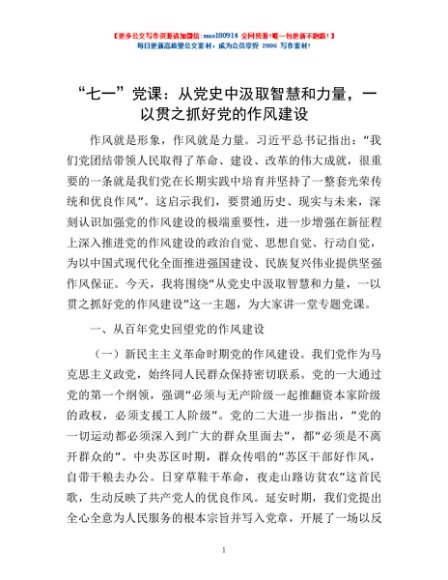 / “七一”党课:从党史中汲取智慧和力量,一以贯之抓好党的作风建设
