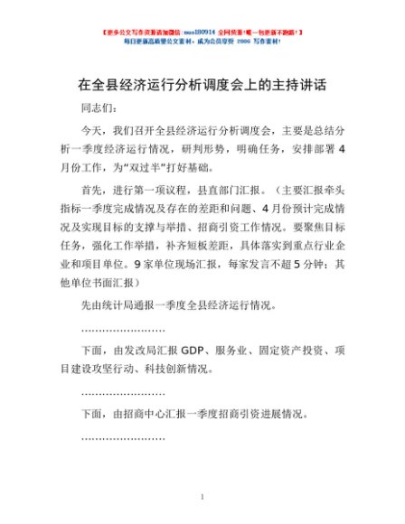 / 在全县经济运行分析调度会上的主持讲话